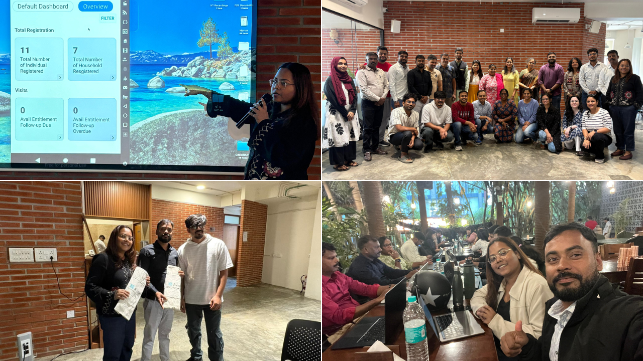 The in-person cohort commenced with a detailed revisit of this preparatory work. Day One was devoted to refining the scoping document and visualising APNA’s programme flow within a digital framework. The Avni team consistently questioned our assumptions and encouraged us to justify each step in our process. This reflective approach helped us gain a clearer understanding of our own organisational systems. Post-lunch, the focus shifted to building the MIS itself. We began writing logic, setting user permissions, and structuring workflows, with hands-on coding support from the mentors where required. The session was intensive and collaborative, and the shared meals offered space for informal exchanges across organisations.